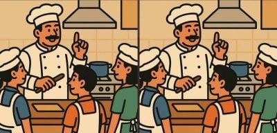 ¿Listo para el siguiente reto? Fíjate bien en dos fotos de un chef dando clases magistrales de cocina. A primera vista, estas imágenes pueden parecer iges, pero si profundizas, te darás cuenta de 3 pequeñas diferencias que están ingeniosamente escondidas en la imagen. ¿Puedes encontrarlas todas en sólo 19 segundos?