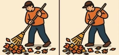 ¿Listo para el siguiente reto? Mira dos fotos de un hombre quitando hojas de otoño. A primera vista parecen idénticas, pero fíjate bien. Hay tres pequeñas diferencias. ¿Crees que puedes encontrarlas todas en sólo 49 segundos? A ver si eres listo.